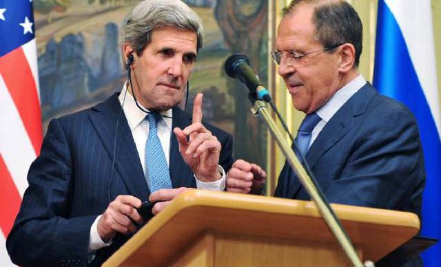 Ngoại trưởng Mỹ John Kerry (trái) và người đồng cấp Nga Sergey Lavrov. Ảnh: Dailymail