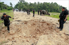 Phát ngôn viên của lực lượng an ninh Thái Lan, Thượng tá Pramote Prom-in cho hay, vụ nổ bom đánh trúng chiếc xe của lực lượng an ninh đang tuần tra ở huyện Sai Buri, tỉnh Pattani, khu vực Quân đội nước này đang giao tranh với lực lượng phiến quân Hồi giáo gốc Malaysia chống đối chính quyền.