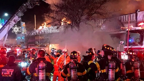 | Đám cháy đã làm bị thương 12 lính cứu hỏa. Ảnh: NBC New York |