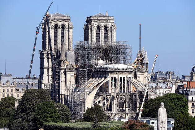 Nhà thờ Đức Bà sau trận hỏa hoạn hồi tháng Tư. Ảnh: CNA