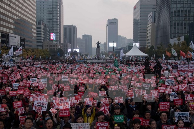 Biểu tình tại Seoul ngày 5/11, đòi Tổng thống Park Geun-Hye từ chức. (Nguồn: AFP/TTXVN)