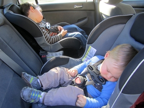 Trẻ em ngủ trên ôtô ở Mỹ. Ảnh: DCFSNV.