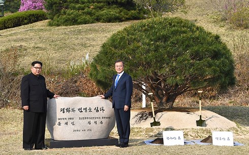 Hai nhà lãnh đạo Hàn Quốc và Triều Tiên đã trồng cây tùng-biểu tượng của hòa bình và thịnh vượng giữa 2 miền Triều Tiền.