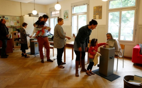 Người dân Thụy Sĩ bỏ phiếu về việc chính phủ chu cấp tiền hàng tháng cho mỗi công dân. Ảnh Reuters