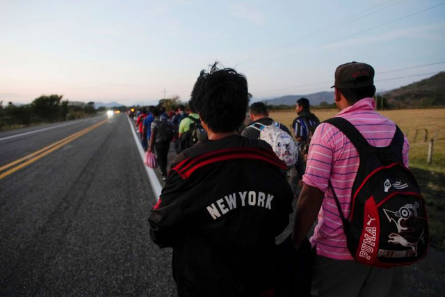 Người nhập cư đi bộ dọc một đường cao tốc tại Chauites, Mexico trong hành trình đến nước Mỹ - Ảnh: REUTERS