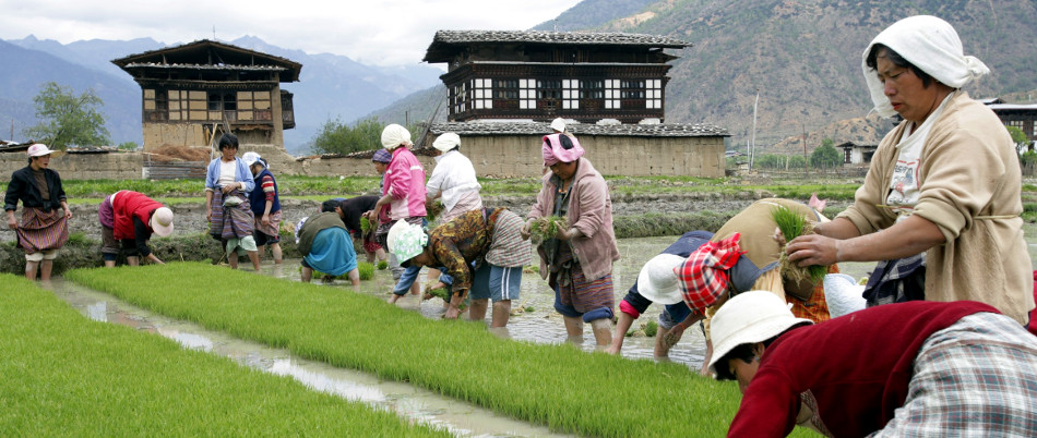 Nông dân trên một cánh đồng ở Bhutan. Ảnh: Bhutan Holiday Planner