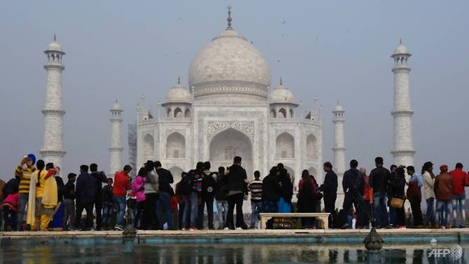 Du khách tham quan khu lăng mô Taj Mahal. Ảnh: CNA