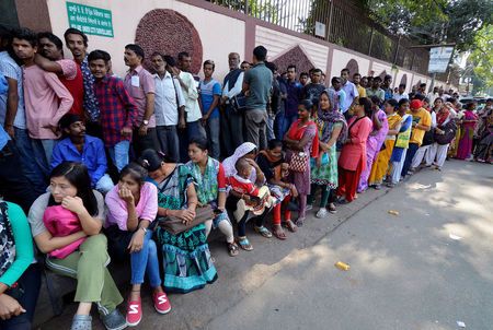 Người dân xếp hàng để đổi tiền bên ngoài một ngân hàng ở thành phố Guwahati, Ấn Độ ngày 12/11. Ảnh: Reuters