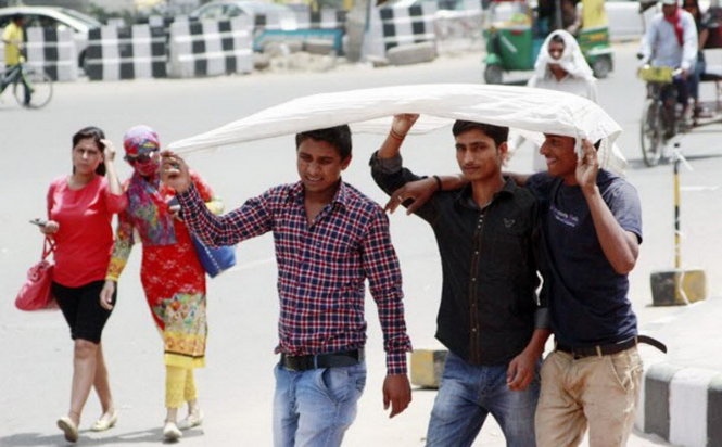Người dân Ấn Độ đi dưới nắng nóng. Ảnh: PTI