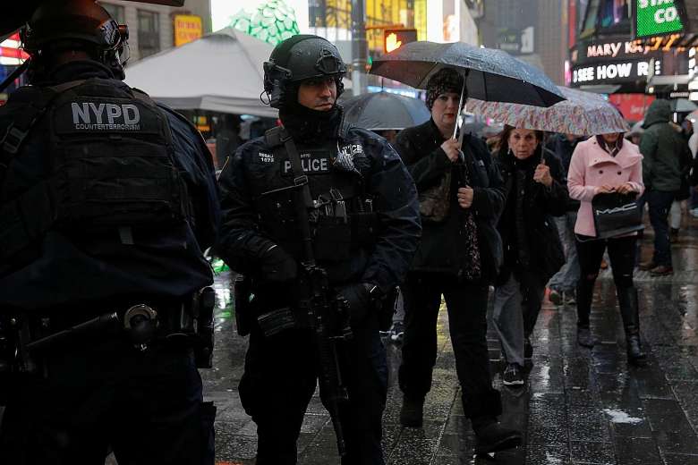 Cảnh sát chống khủng bố New York tuần tra tại Quảng trường Thời đại. Ảnh: Reuters