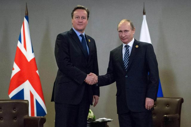 Tổng thống Nga Vladimir Putin (phải) và Thủ tướng Anh David Cameron. Ảnh: Independent