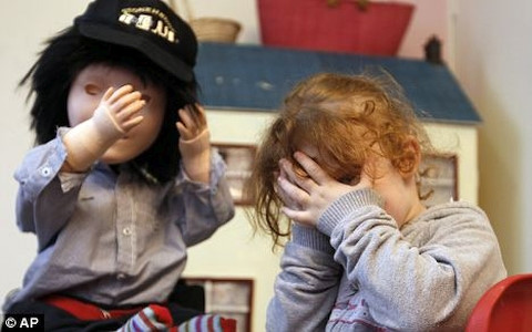 | Một bé gái tự kỷ vui vẻ chơi đùa của robot Kaspar. Ảnh: AP |