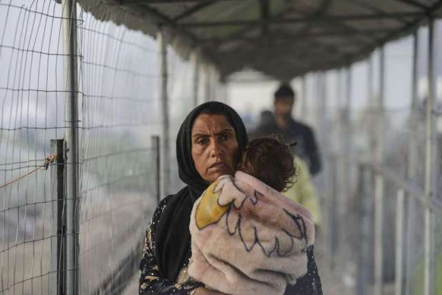 Một người tị nạn cùng con gái của mình tại trại tạm trú ở Hy Lạp hôm 1/4. Ảnh: AFP