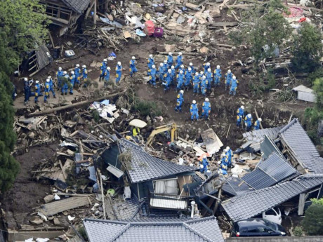 Lực lượng cứu hộ tìm kiếm các nạn nhân động đất tại Minami-Aso, Kumamoto ngày 17/4. Nguồn: AFP