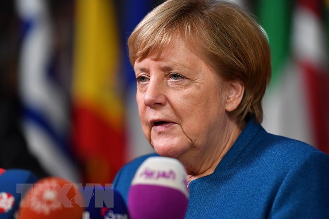 Thủ tướng Đức Angela Merkel trả lời báo giới khi tới Brussels, Bỉ. Nguồn: AFP/TTXVN