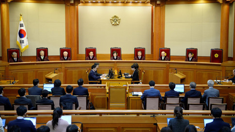 Toàn cảnh phiên tòa tại tòa án Hiến pháp Hàn Quốc sáng 10.3
