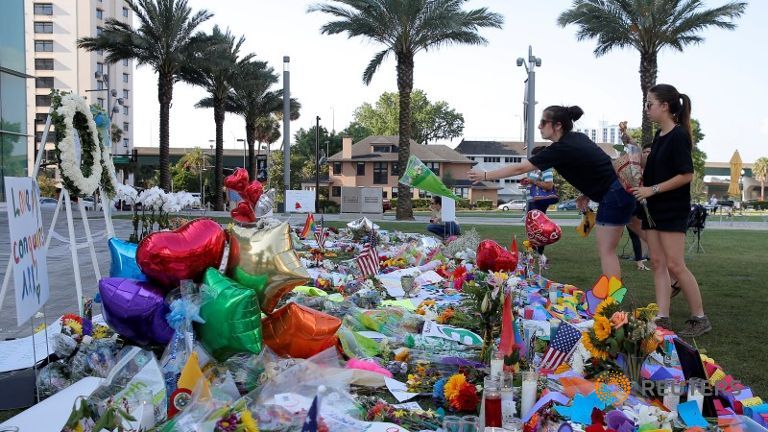 Đài tưởng niệm các nạn nhân trong vụ xả súng ở hộp đêm dành cho người đồng tính tại Orlando, Florida, Mỹ. Ảnh: Reuters