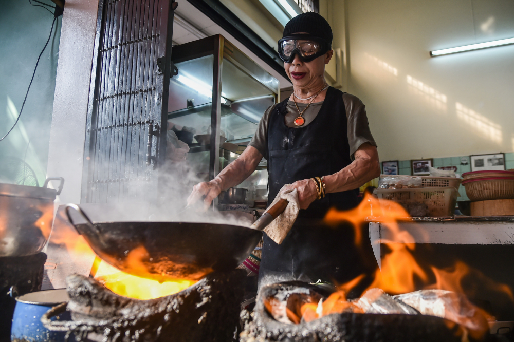 "Nữ hoàng ẩm thực đường phố" Jae Fai với món trứng tráng thịt cua. Ảnh: The Nation