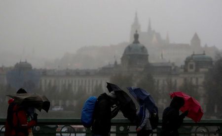 Mưa to và gió giật mạnh tại thủ đô Prague, Cộng hòa Séc ngày 29/10. Ảnh: Reuters