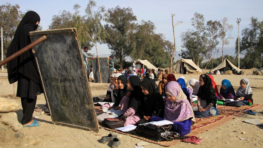 Trước đó, sự gia tăng số trẻ em được đến trường, từ chưa tới 1 triệu trẻ khi Taliban bị lật đổ năm 2001 lên tới hơn 7 triệu học sinh hiện nay, đã được coi là thành công lớn trong nỗ lực tái thiết Afghanistan sau hàng thập kỷ chiến tranh. Tuy nhiên, những tiến bộ trong việc tuyển sinh đã bị đình trệ, nguồn tiền dành cho các trường học mới bị bỏ phí và hàng ngàn "giáo viên ma" đã gây hại cho chất lượng giáo dục.