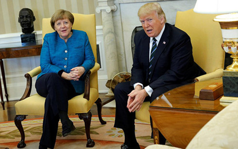 | Ông Trump tỏ ra khá lạnh lùng trong buổi tiếp bà Merkel ở phòng Bầu Dục, Nhà Trắng. Ảnh: Reuters. |