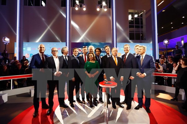 Lãnh đạo tám đảng lớn nhất tại Hà Lan sau cuộc tranh luận trên truyền hình cuối cùng ở La Haye. Nguồn: AFP