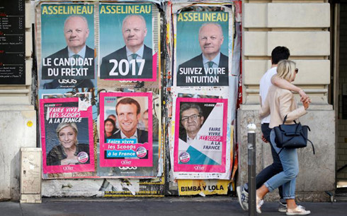 | Áp phích vận động bầu cử của các ứng viên Tổng thống Pháp. Ảnh: Reuters. |