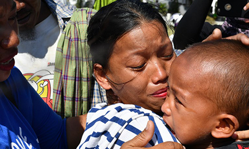 Rahmatia khóc khi đoàn tụ với con trai Jumadil hôm 5/10. Ảnh: AFP