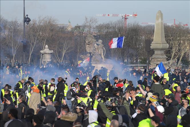 Người biểu tình "Áo vàng" tập trung tại Thủ đô Paris, Pháp ngày 16/2/2019. Ảnh: AFP/TTXVN