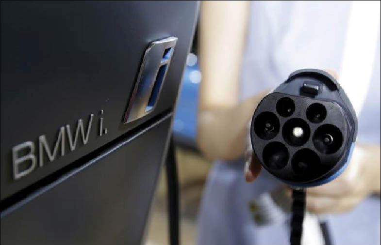 Mô hình cắm sạc một chiếc xe điện BMW i3. Ảnh: Reuters