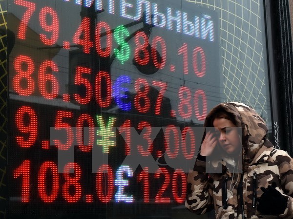 Bảng tỷ giá đồng ruble so với các đồng ngoại tệ tại thủ đô Moskva. Nguồn: AFP