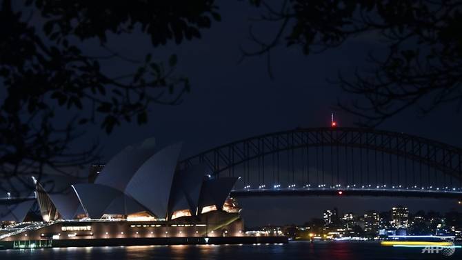 Cầu cảng Sydney và Nhà hát Opera Sydney tắt đèn trong một giờ đồng hồ tối 24/3 để khởi động một chiến dịch toàn cầu nhằm nâng cao nhận thức về tác động của biến đổi khí hậu. Ảnh: AFP