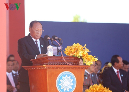Bên cạnh đó, chúng ta cũng cảm ơn sự giúp đỡ rất quý báu của các nước bạn, những người yêu hòa bình và công lý trên toàn thế giới đã ủng hộ chúng ta giải phóng dân tộc, thoát khỏi hố tử thần”, ông Heng Samrin nhấn mạnh.