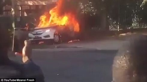 | Một chiếc taxi bị đánh bom xăng. Ảnh: Youtube |
