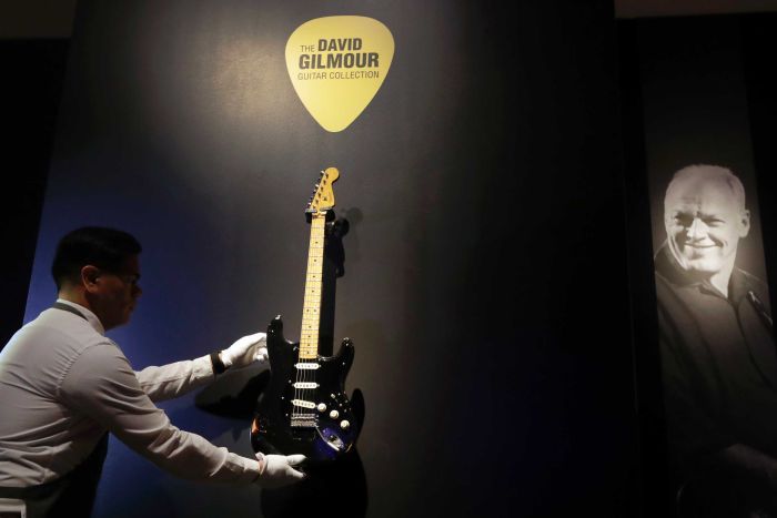 Cây đàn guitar Fender Stratocaster huyền thoại mang tên “Black Strat” của nhạc sĩ này, từng được sử dụng để ghi âm những album hit của ban nhạc, bao gồm The Dark Side of the Moon (1973), Wish You Were Here (1975), Animals (1977) và The Wall (1979), là lô đấu nổi bật nhất với giá 3.975.000 USD, lập kỷ lục đấu giá mới của thế giới đối với một cây guitar.