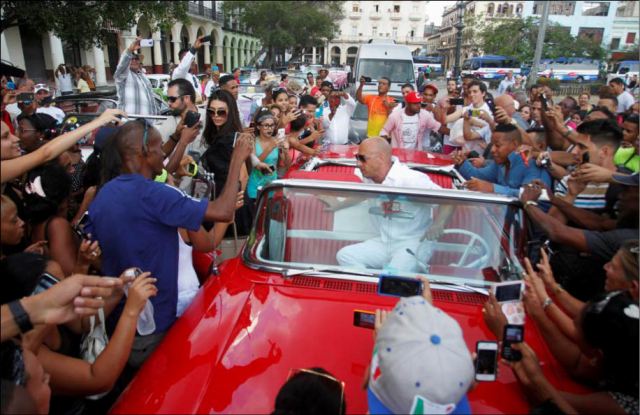 Người hâm mộ ở thủ đô Havana (Cuba) vây quanh nam diễn viên Vin Diesel khi anh đến tham dự show diễn thời trang của Chanel hôm 3/5. Ảnh: Reuters