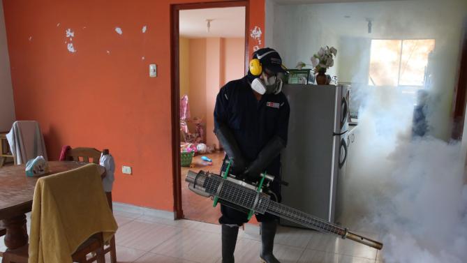 | Một nhân viên y tế đang phun thuốc diệt muỗi để ngăn ngừa sự lây lan của virus Zika. Ảnh: AP. |