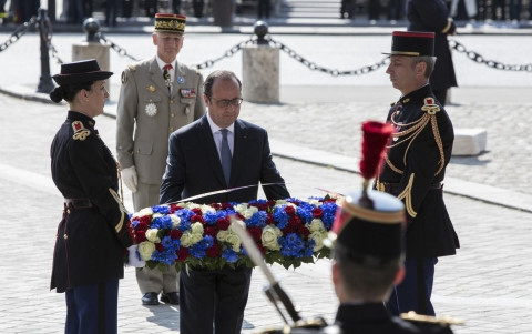 Sau đó, Tổng thống Hollande đã cùng các cựu chiến binh, một nhóm thiếu niên Pháp đến thăm đài tưởng niệm chiến tranh Art de Triomphe đặt vòng hoa tại mộ các chiến sĩ vô danh và dành những phút tưởng niệm những người lính Pháp hi sinh trong chiến tranh. Ông Hollande bày tỏ hy vọng rằng thế hệ trẻ của Pháp cần ghi nhớ những gì đã xảy ra trong lịch sử.