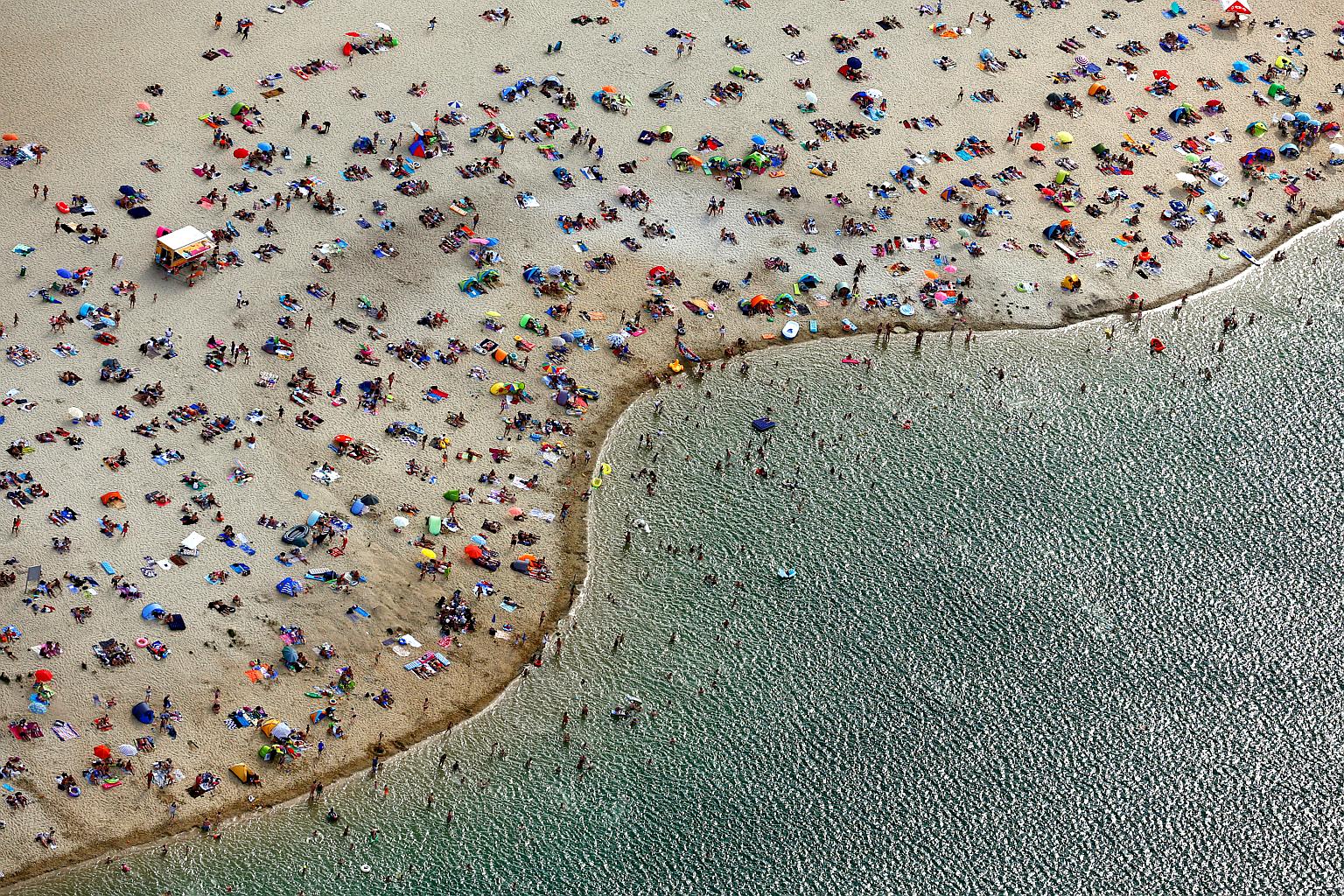 Nhiều người tập trung trên một bãi biển trong đợt sóng nhiệt ở Haltern, Đức. Ảnh: Reuters