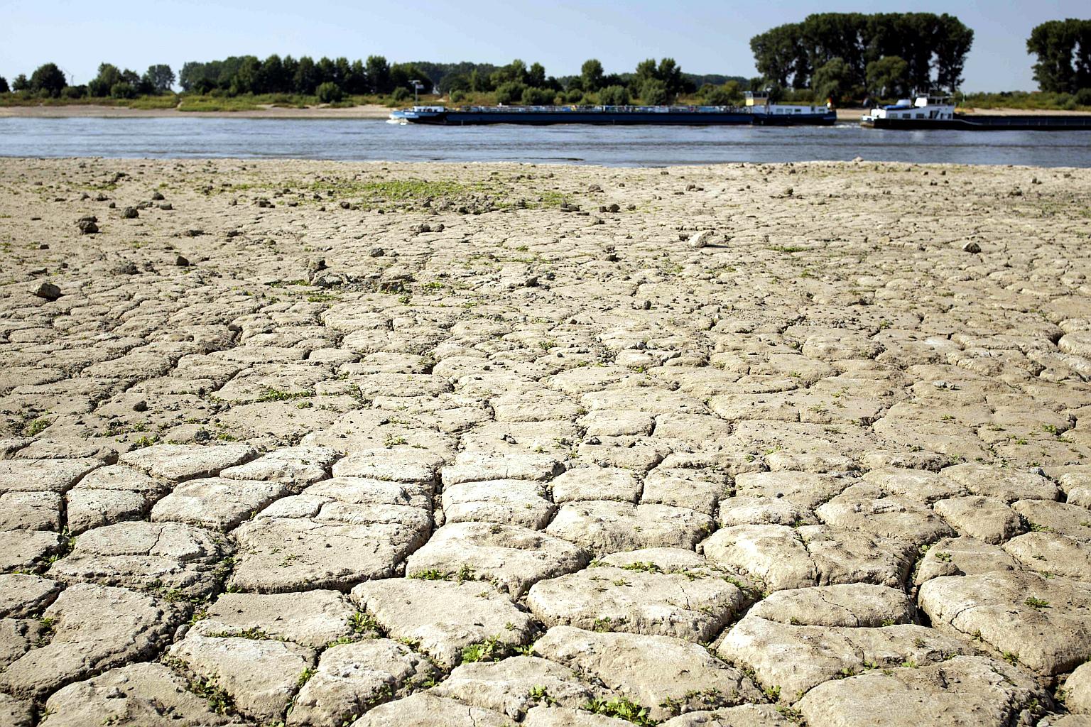 Mặt đất khô cằn ở bờ sông Rhine tại Lobith, Hà Lan​. Ảnh: AFP