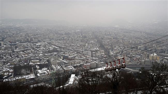Thành phố Grenoble ở Pháp phủ kín bởi khói bụi ô nhiễm ngày 24/1. Ảnh: AFP