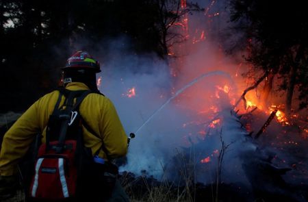 Nhân viên cứu hỏa chiến đấu chống cháy rừng gần Santa Rosa, California, Mỹ. Ảnh: Reuters