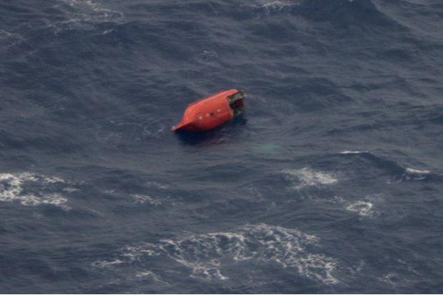 Một thuyền cứu hộ bị lật nghi là của Emerald Star, tại khu vực tàu gặp nạn trên vùng biển Philippines. Ảnh: Bangkok post