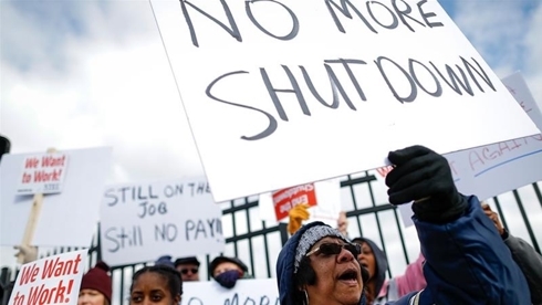| Người biểu tình yêu cầu giải quyết tình trạng Chính phủ bị đóng cửa. Ảnh: AP |
