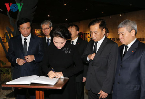| Chủ tịch Quốc hội Nguyễn Thị Kim Ngân ghi sổ tang |