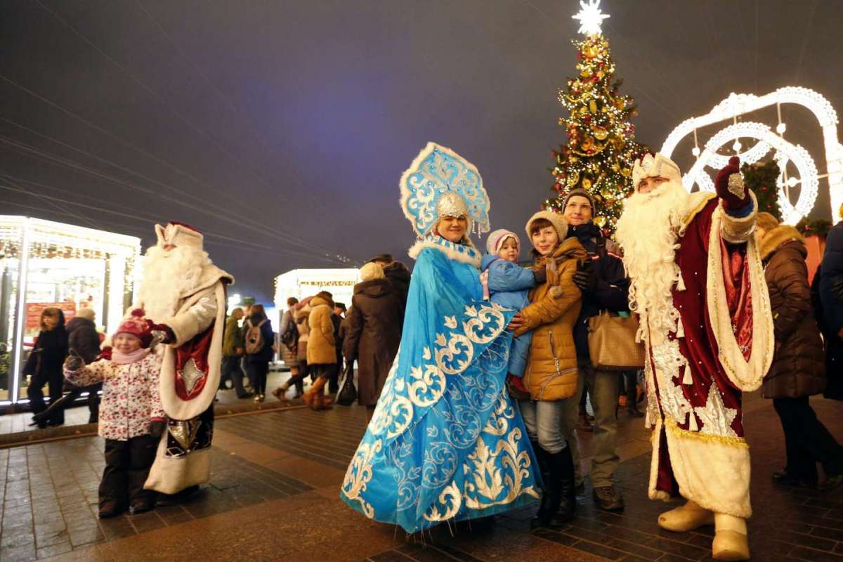 10. Người đàn ông ăn mặc như Ded Moroz (Ông Frost) và người phụ nữ trong trang phục Snegurochka tại quảng trường Manezhnaya ở Moscow, Nga, vào ngày 25/12/2016. Ảnh: EPA