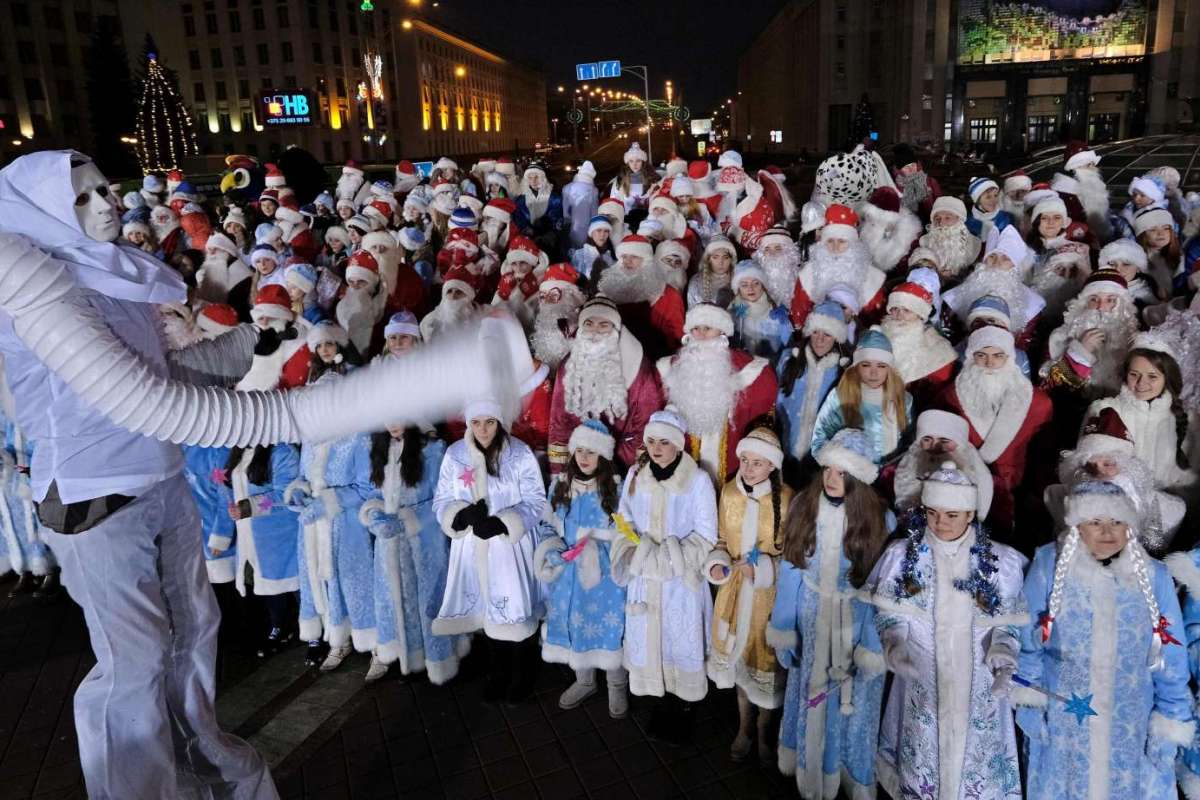 16. Đàn ông và phụ nữ trong những bộ trang phục hoá trang diễu hành trên đường phố trong một hoạt động Giáng sinh truyền thống ở Minsk, Belarus, ngày 24/12/ 2016. Ảnh: AFP