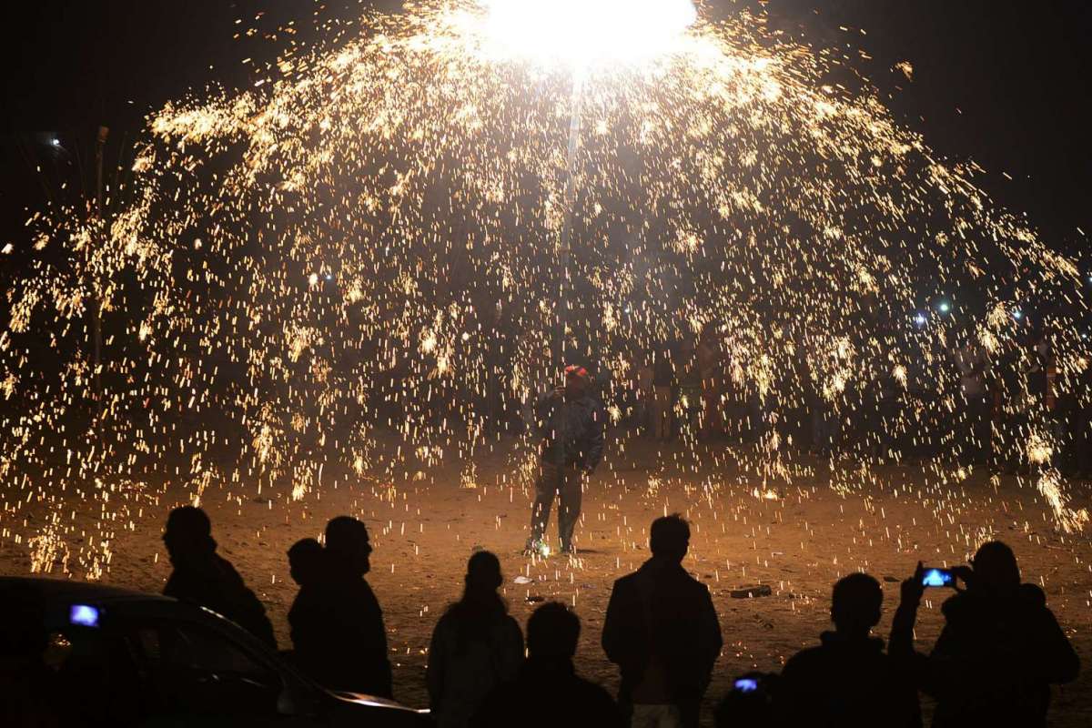20. Màn trình diễn pháo hoa kỷ niệm đêm Giáng sinh bên ngoài nhà thờ St Peter ở Allahabad, Ấn Độ, đêm 24/12/2016. Ảnh: AFP