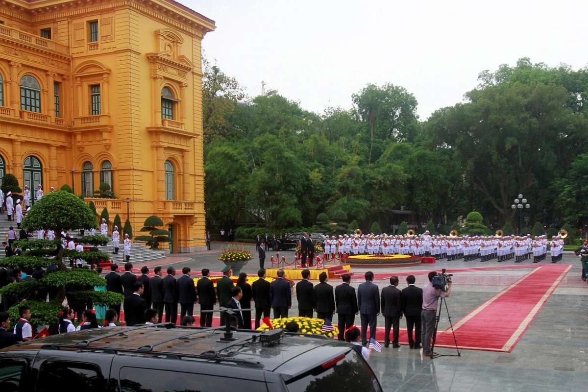 | Toàn cảnh lễ đón chính thức tại Phủ Chủ tịch sáng 23/5. Ảnh: AFP |