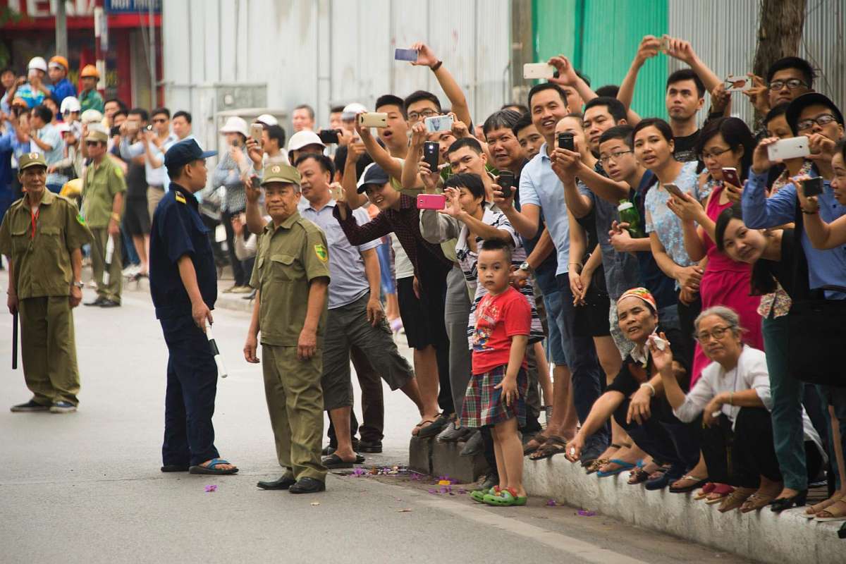 Người dân Hà Nội chụp ảnh đoàn xe của Tổng thống Mỹ Barack Obama. Ảnh: AFP
